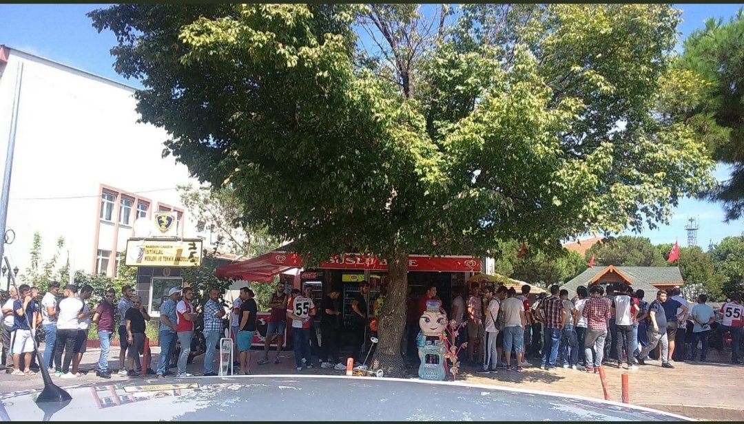 maçın başlamasına 15 dakka var dışarıda bilet kuyruklarında bin den fazla taraftar var